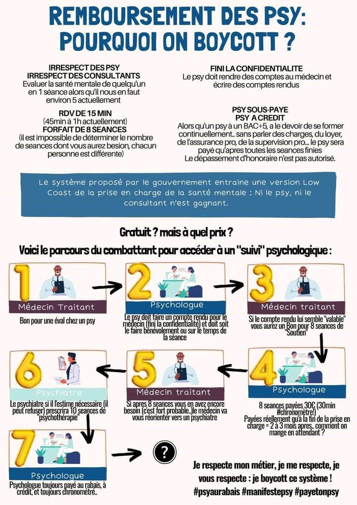 En tant que psychologue, parce que je respecte le code de déontologie inhérent à ma profession, je boycotte donc ce dispositif (je suis disponible pour échanger avec vous autour de ce sujet si vous le souhaitez).
